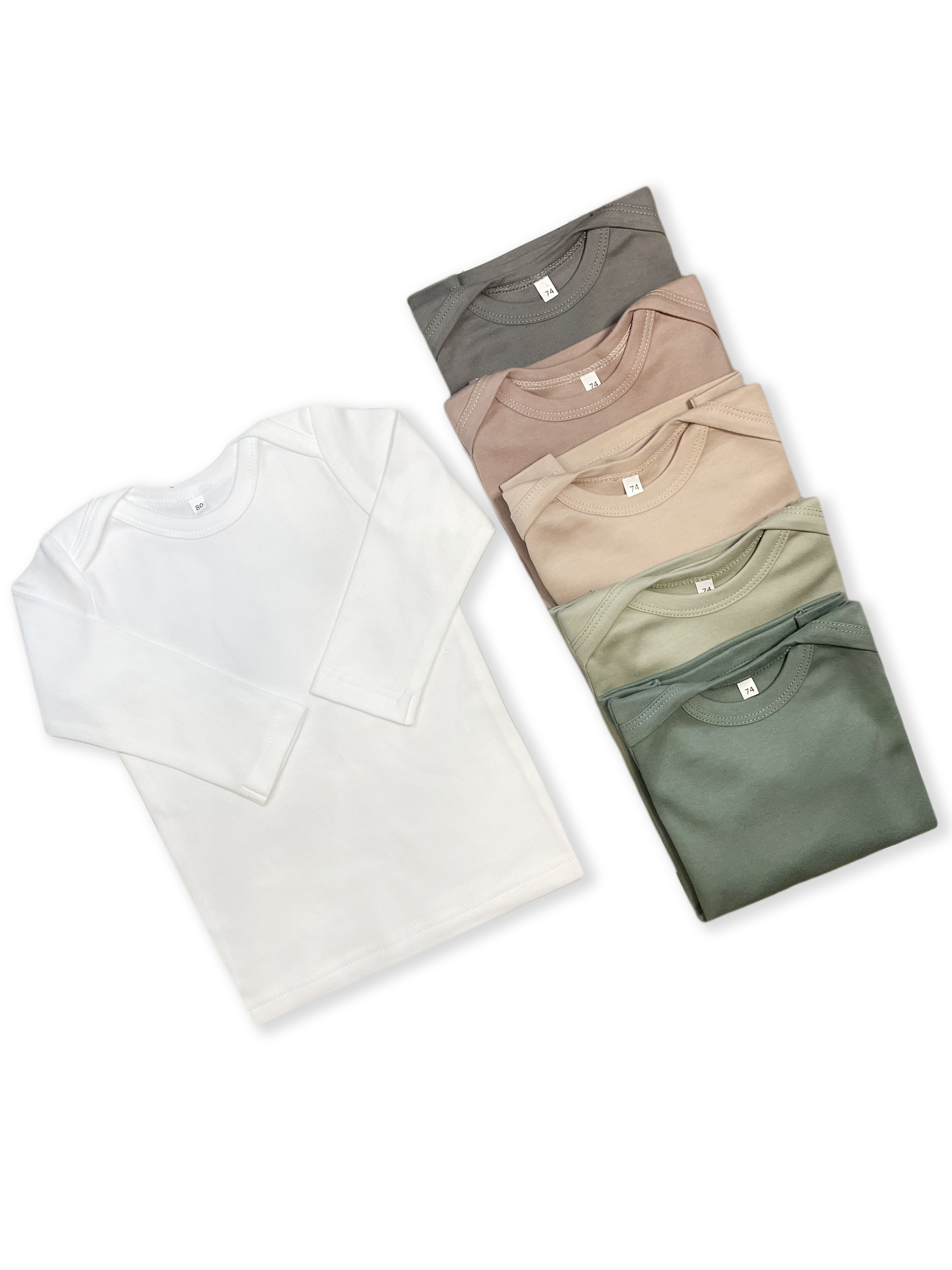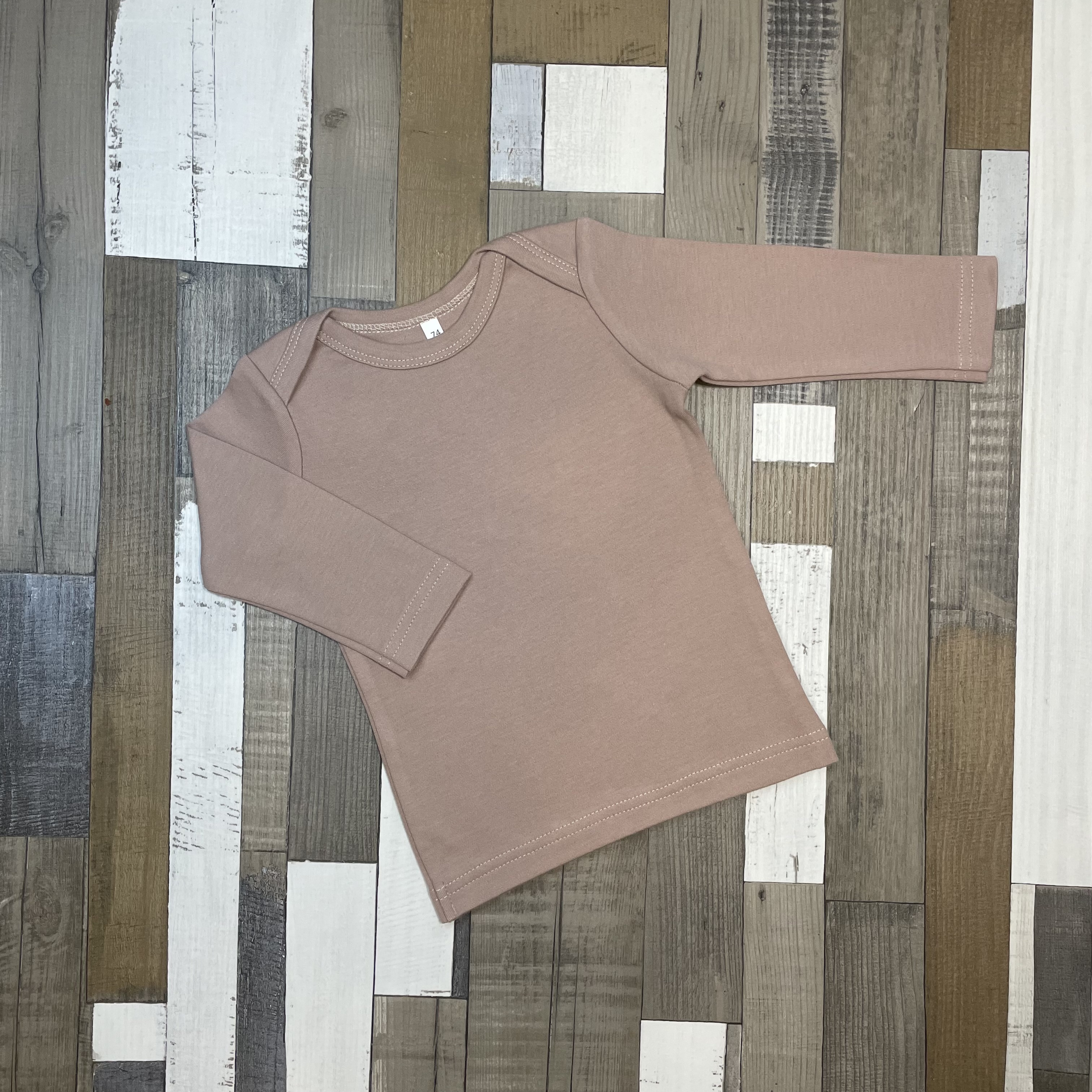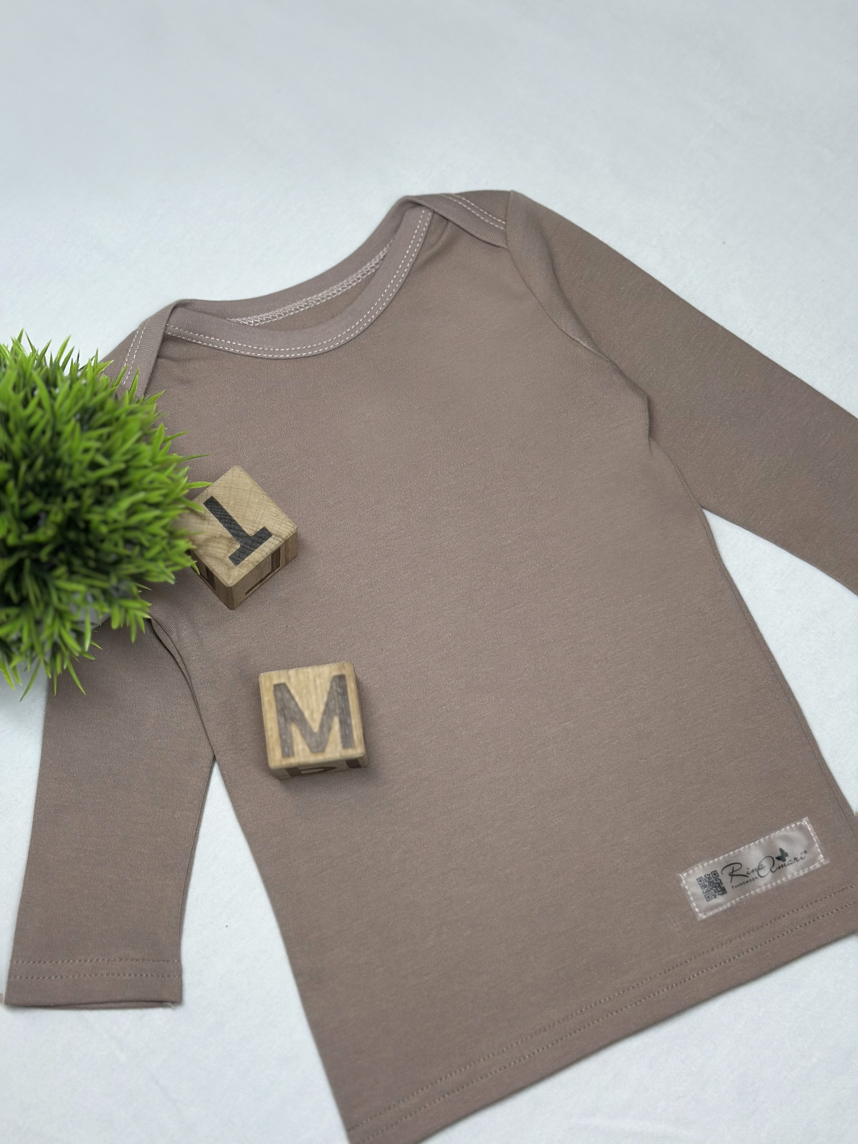 Футболка с длинным рукавом —  это изделие с длинным рукавом в размерах с 74 по 92, выполненный из плотного и очень мягкого трикотажа. Футболка подойдёт для носки  груглый год в жаркую погоду для прогулок на улице и дома. Плечики нашиваются внахлёст, благодаря этому горловина более широкая и топ можно надевать не только через голову, но и через ножки.