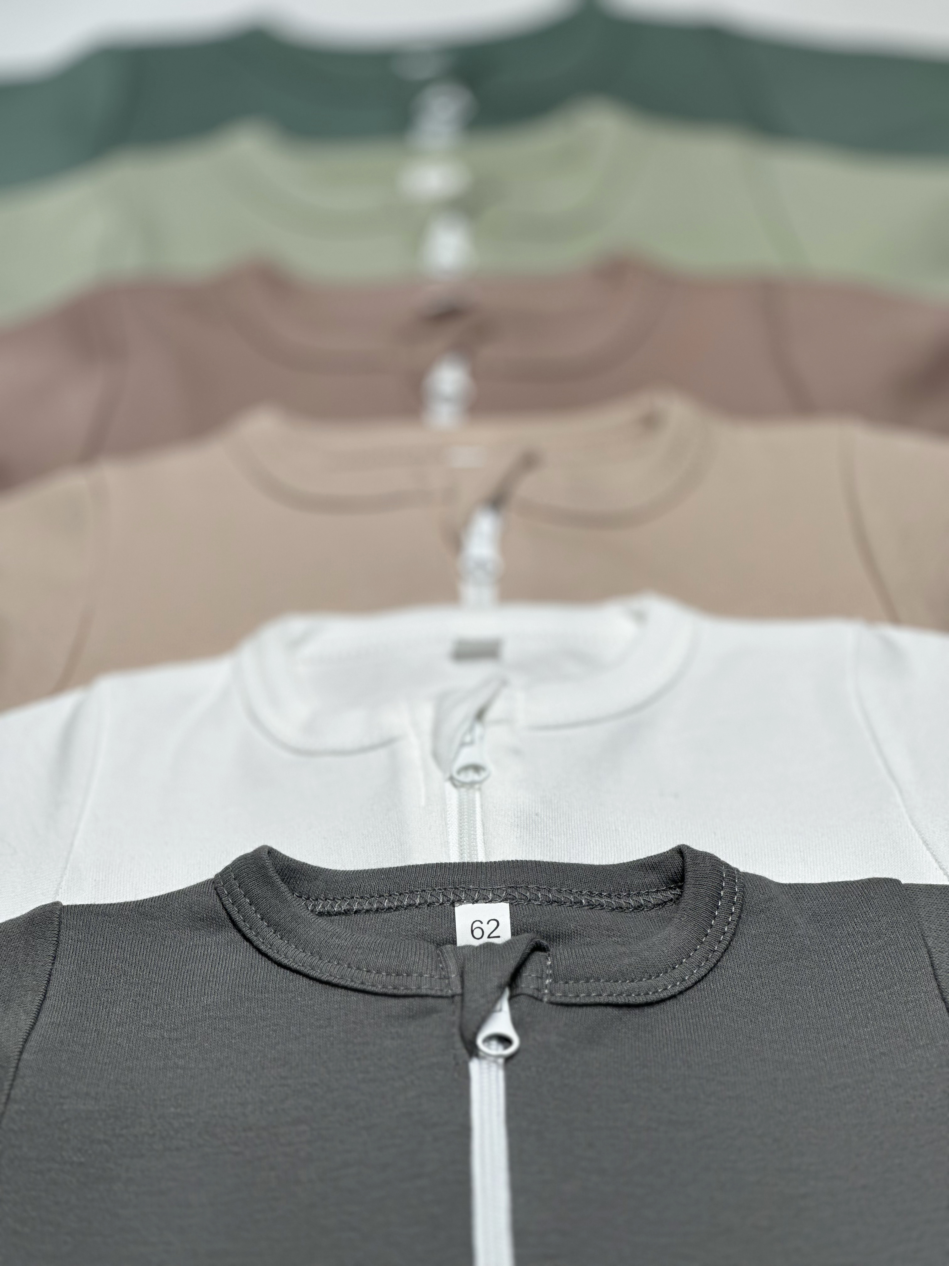 Наличие молнии позволяет быстро и легко переодеть малыша, поменять подгузник.  Молния изнутри закрыта тканевой планкой, которая защищает соприкосновение с телом грудничка. На вороте у шеи дополнительно нашит трикотажный язычок, закрывающий бегунок и не дающий застёжке раскрыться.