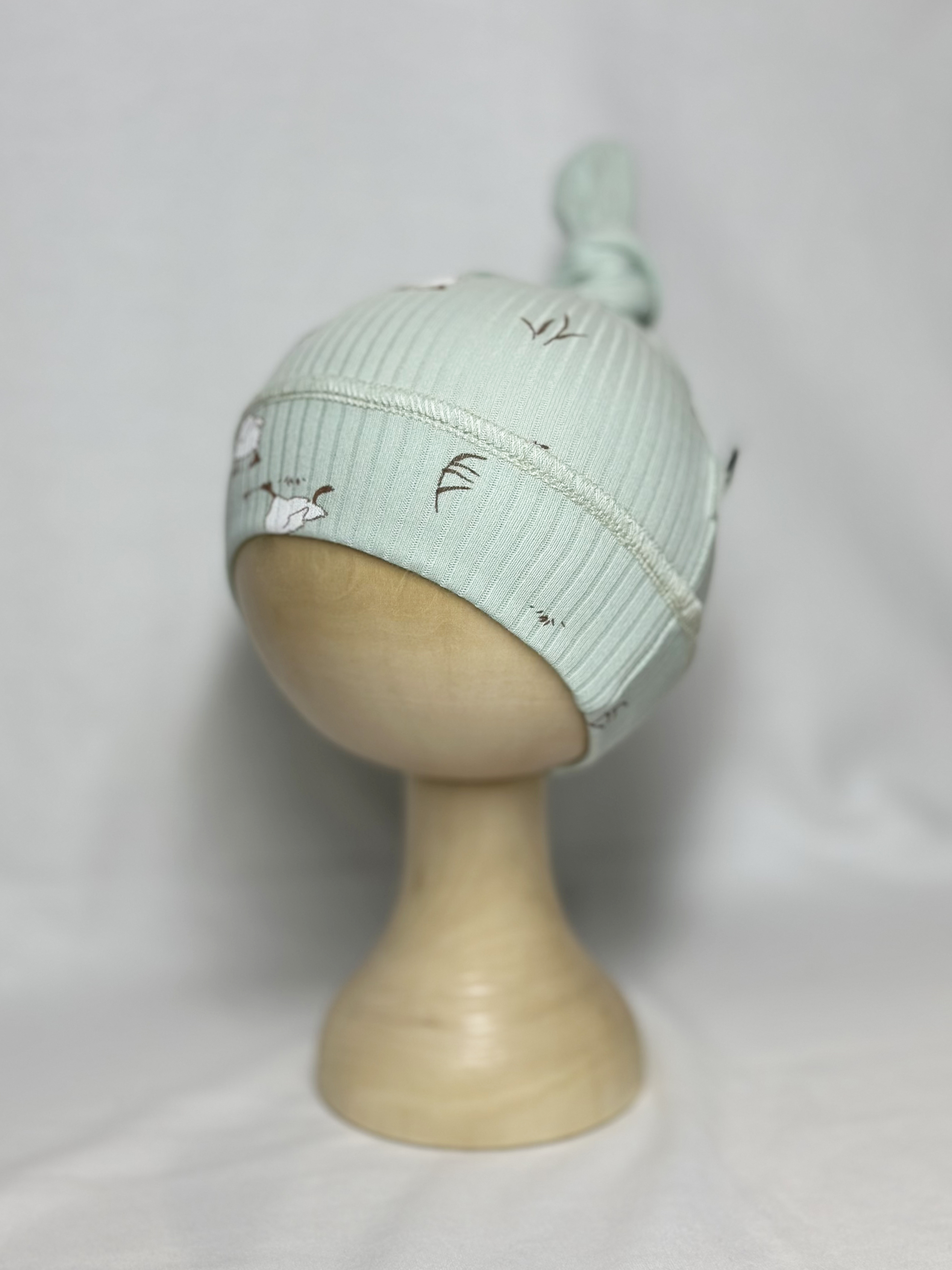 Шапочка узелок выполнена из нежного трикотажного 100% хлопка.